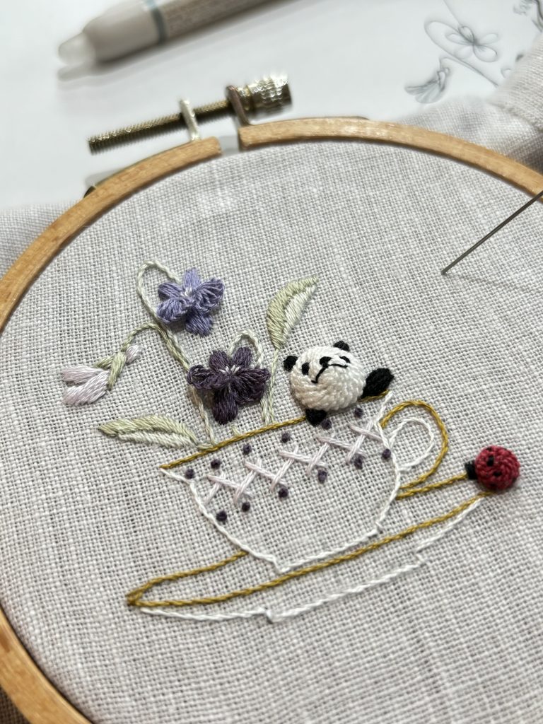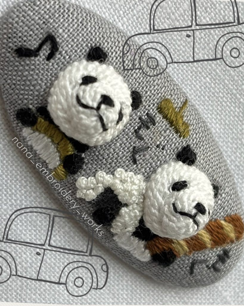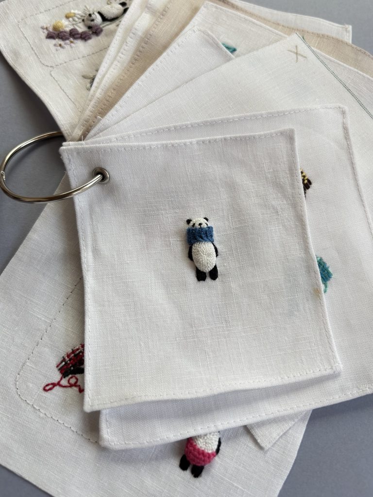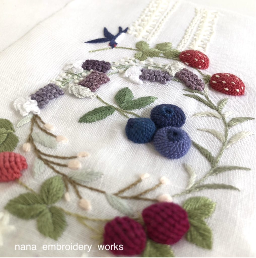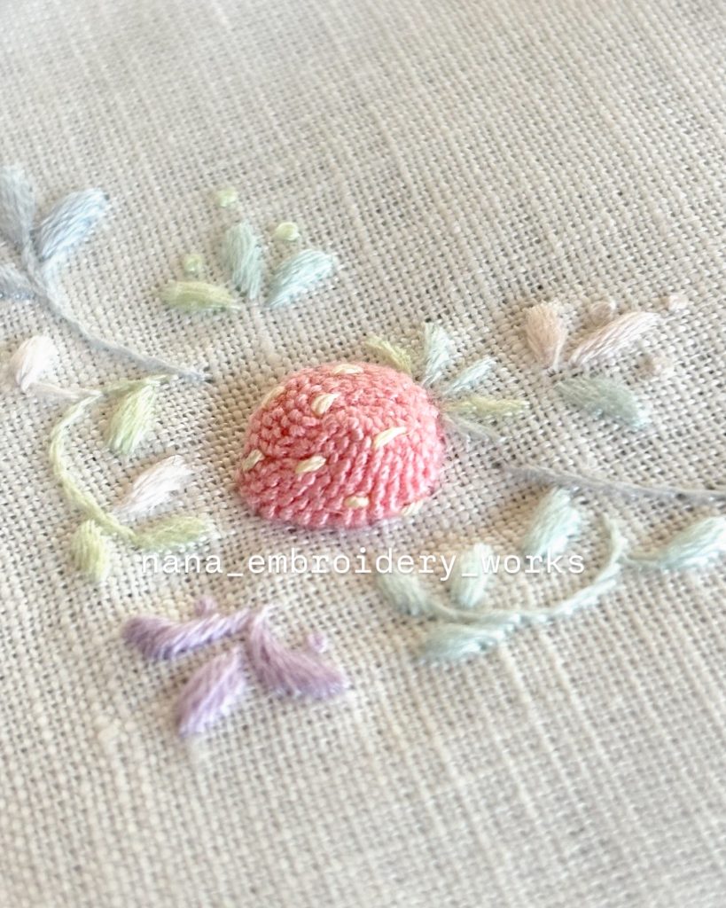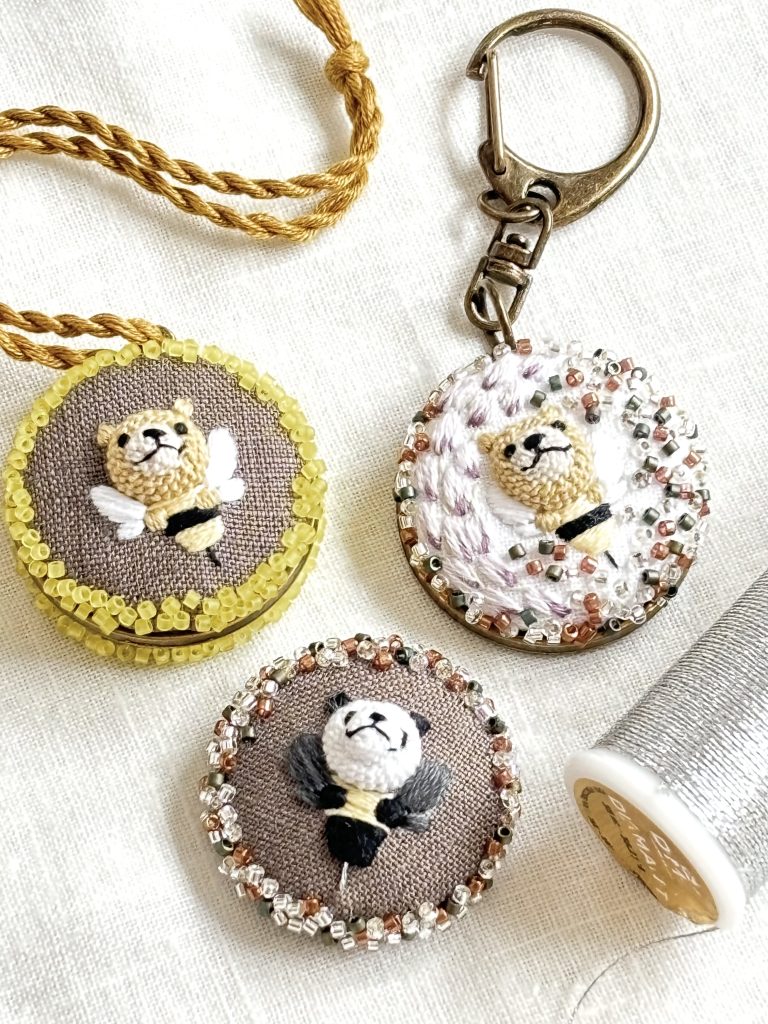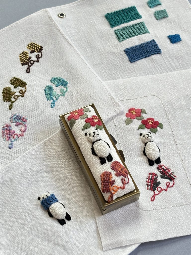 半年間のご受講で著書『小さくてキュートな立体刺繍 nana’s stitch』に掲載の図案はほぼ一人でできるようになると思います。