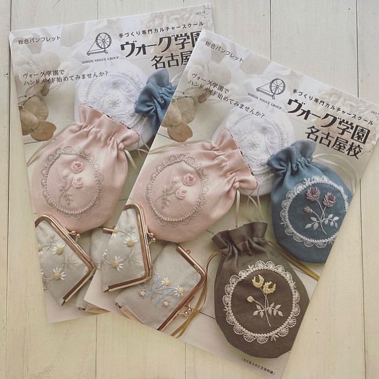 このレースみたいな巾着は、ヴォーグ学園のパンフレットの表紙にも起用されました。