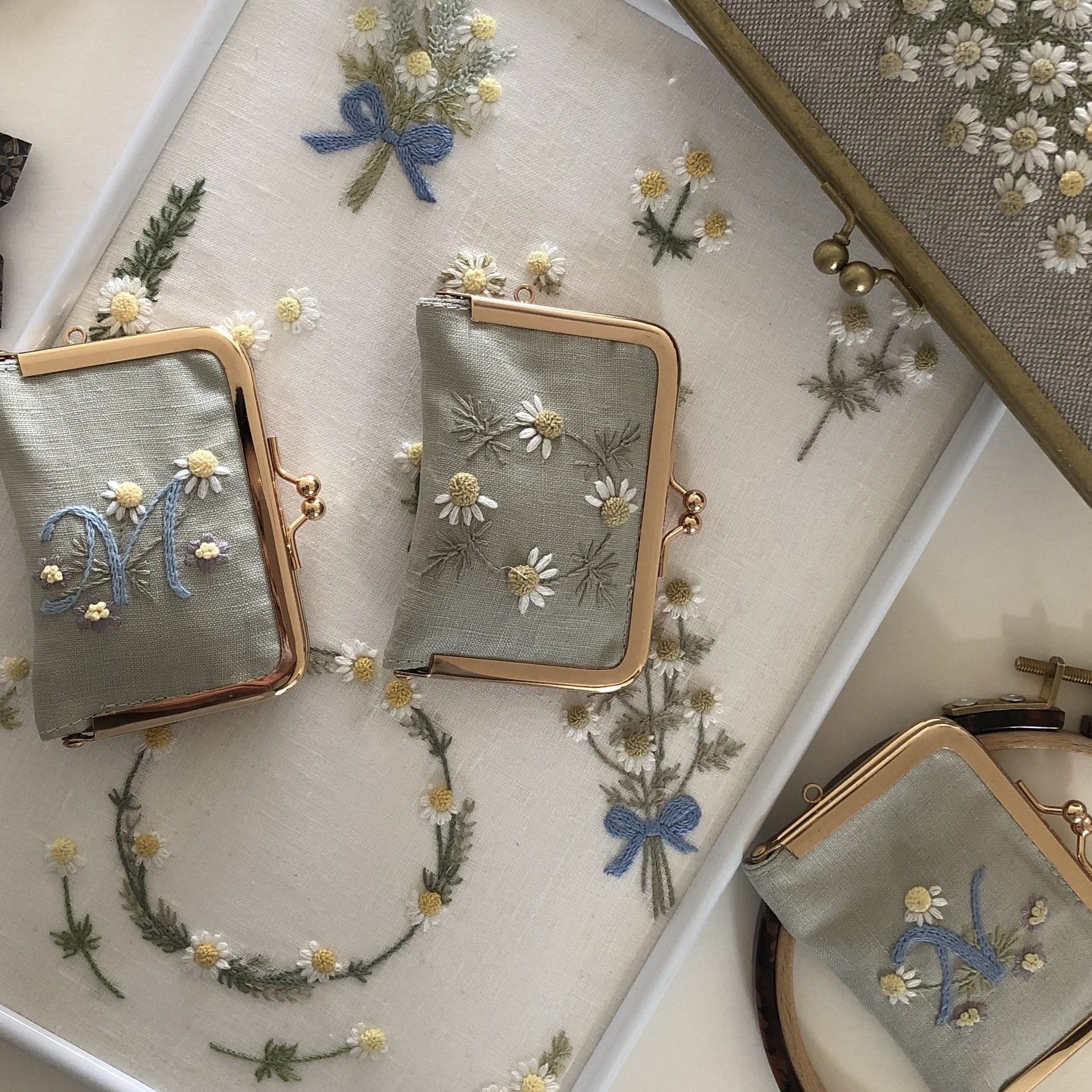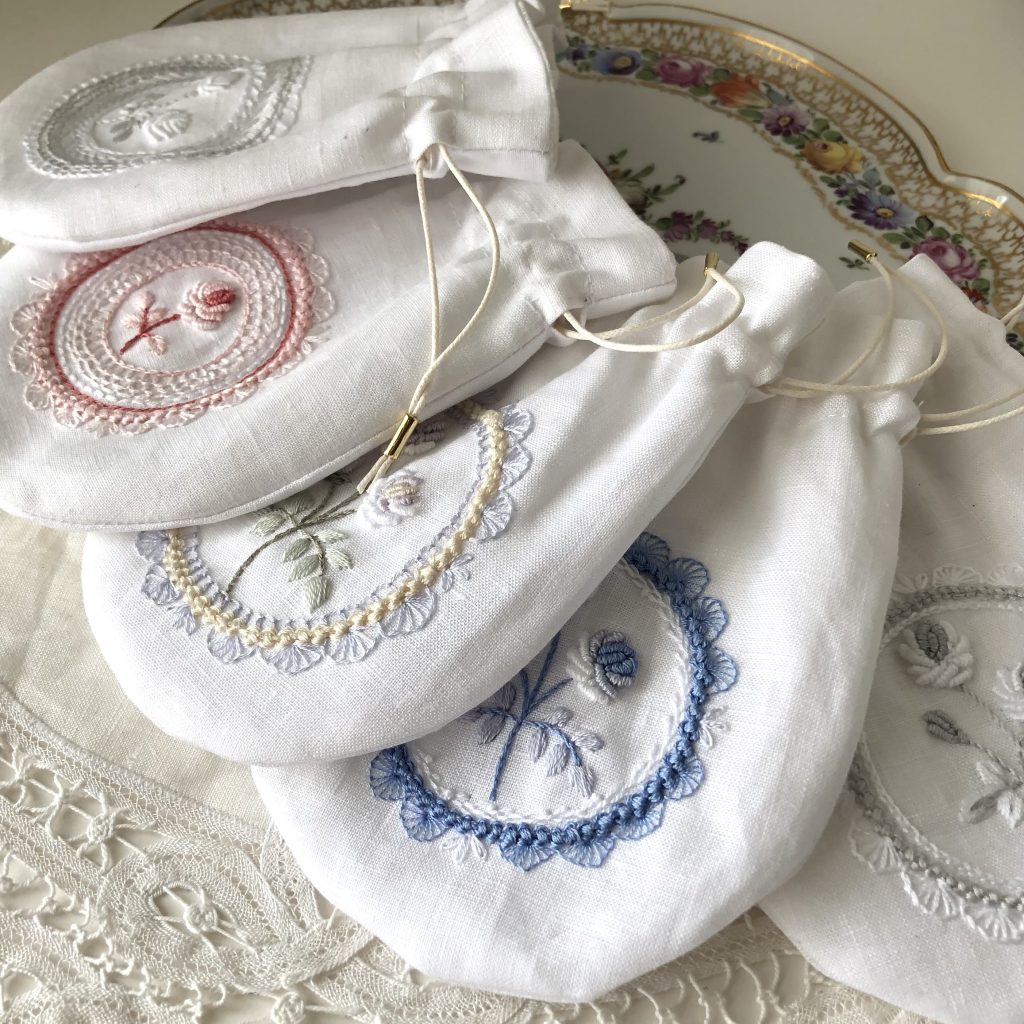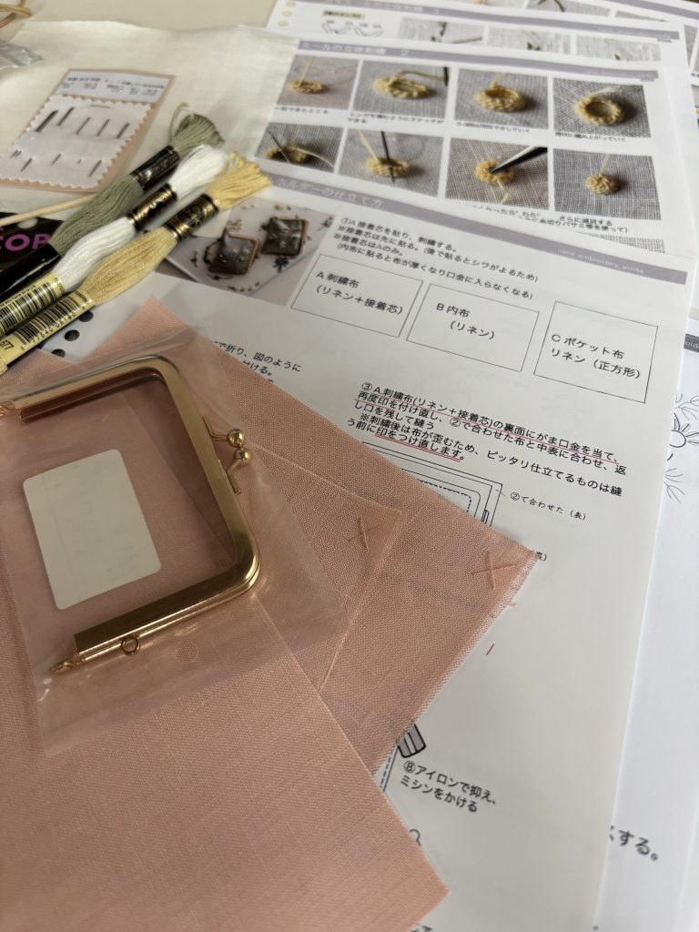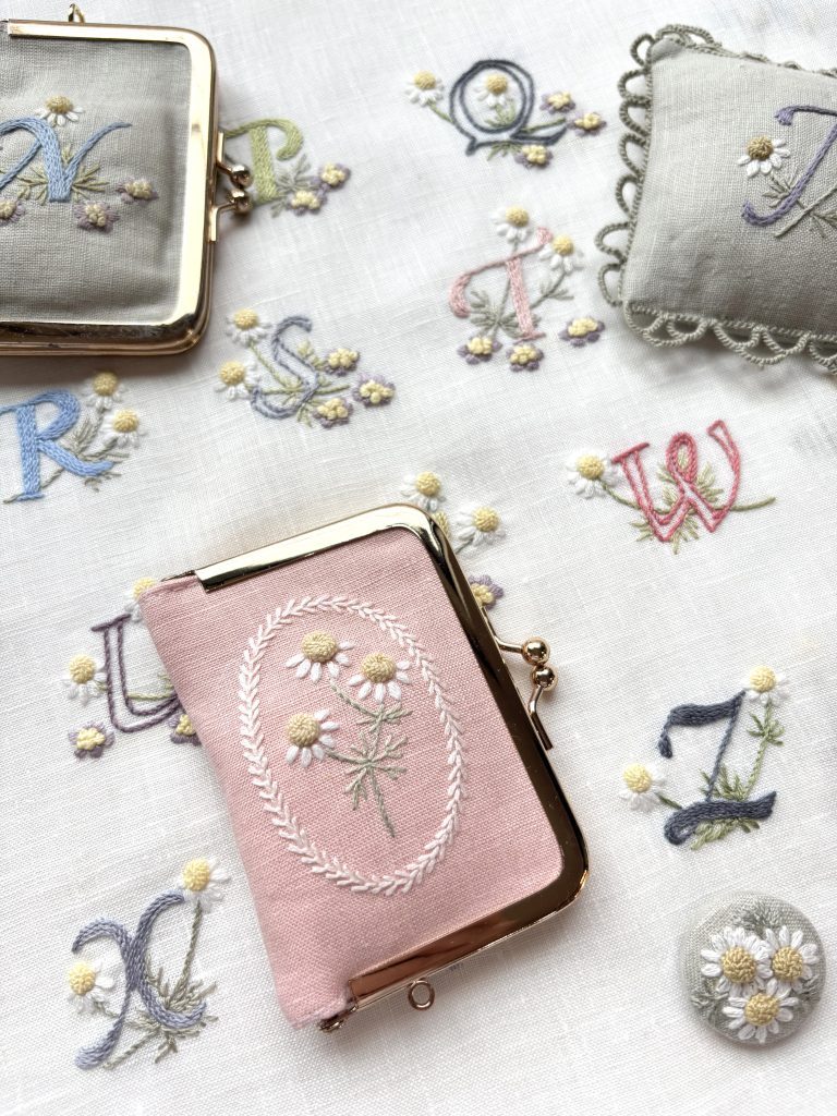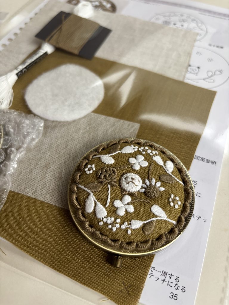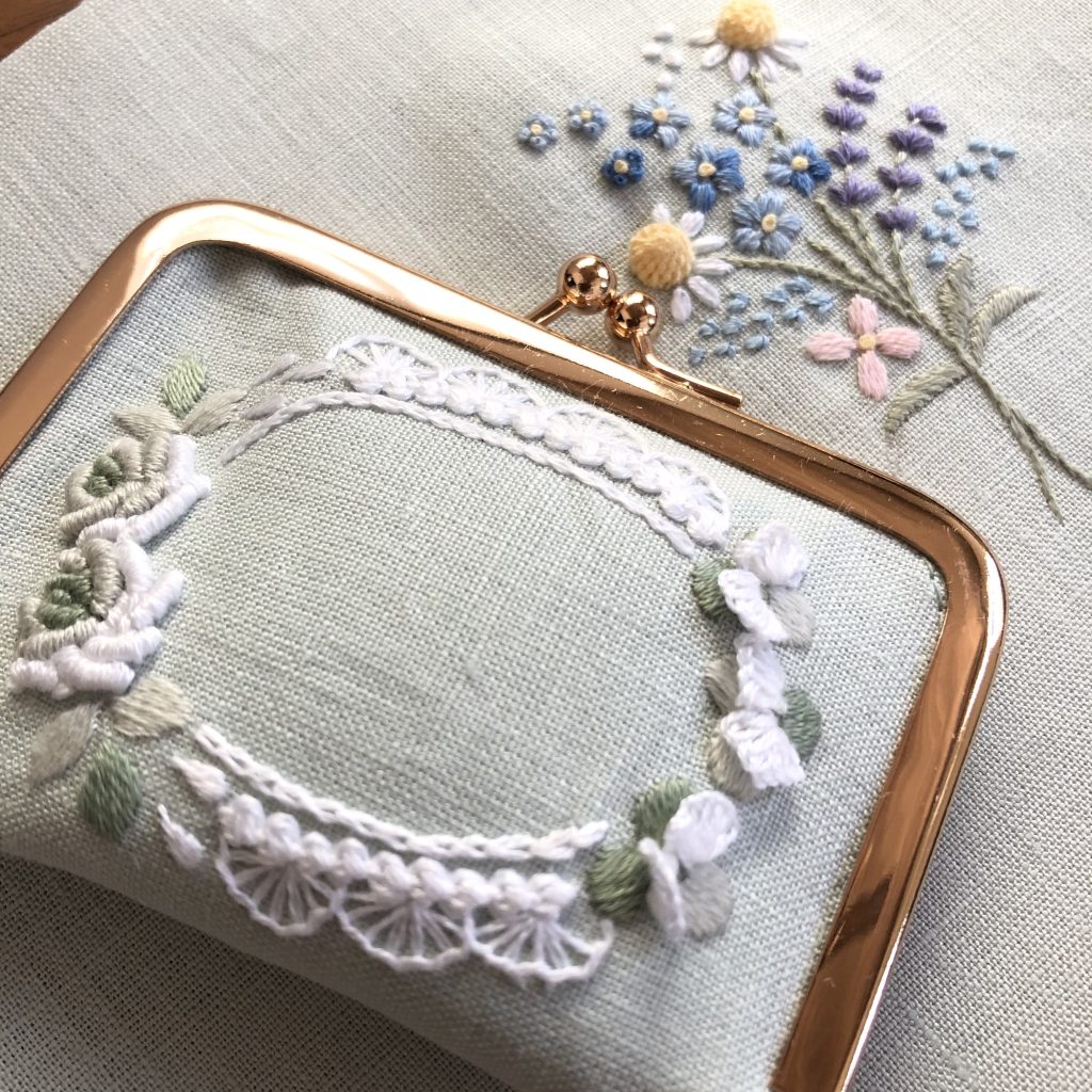 ※ 東京教室は、一枚布に刺繍します。 (小さな立体刺繍が入る額を購入またはご自身で雑貨へ仕立てることも可能)