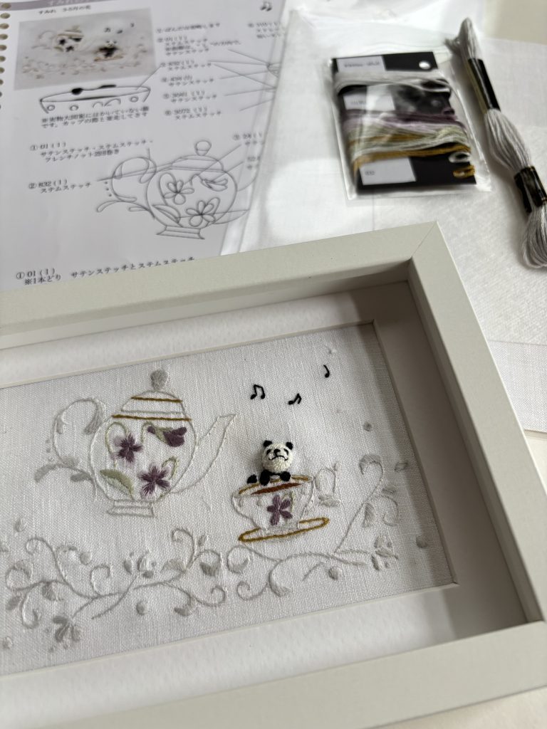 ※東京教室は一枚布に刺繍します。 額に入れて飾ります。