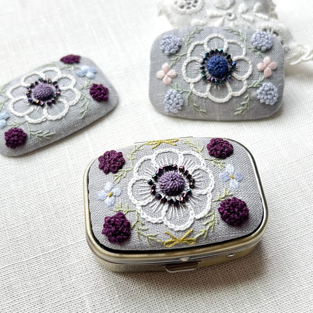①ドーム型レッスン アネモネの立体刺繍のピルケース