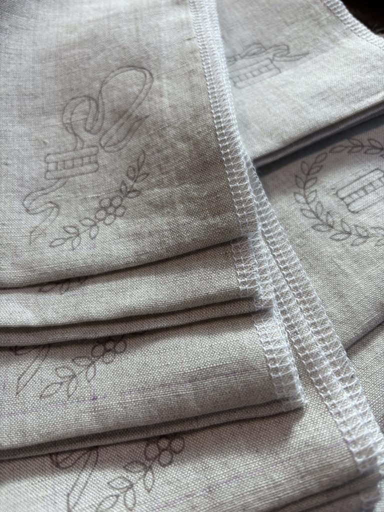 ●すぐにとりかかれるように、リネンの水通し、目地の整え、図案トレース、ロックミシンがすでにかけてあります)