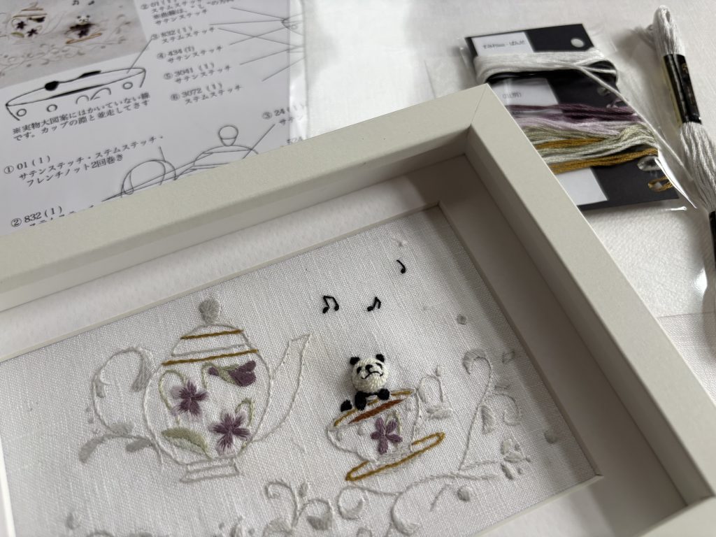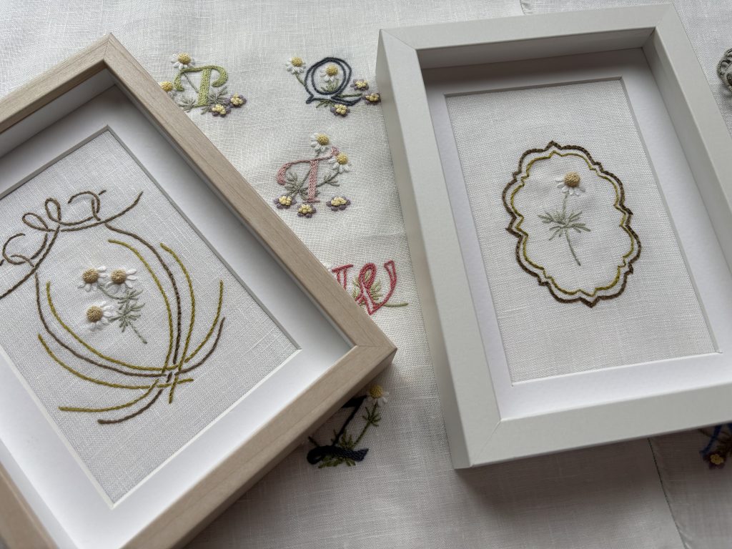 東京教室では、額に入れて飾ることを目的に布に刺繍をしていきます。